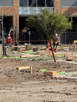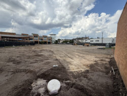 North Lobby demo is on track and construction crews are making good progress on the exterior framing, sheathing and waterproofing of the new building.